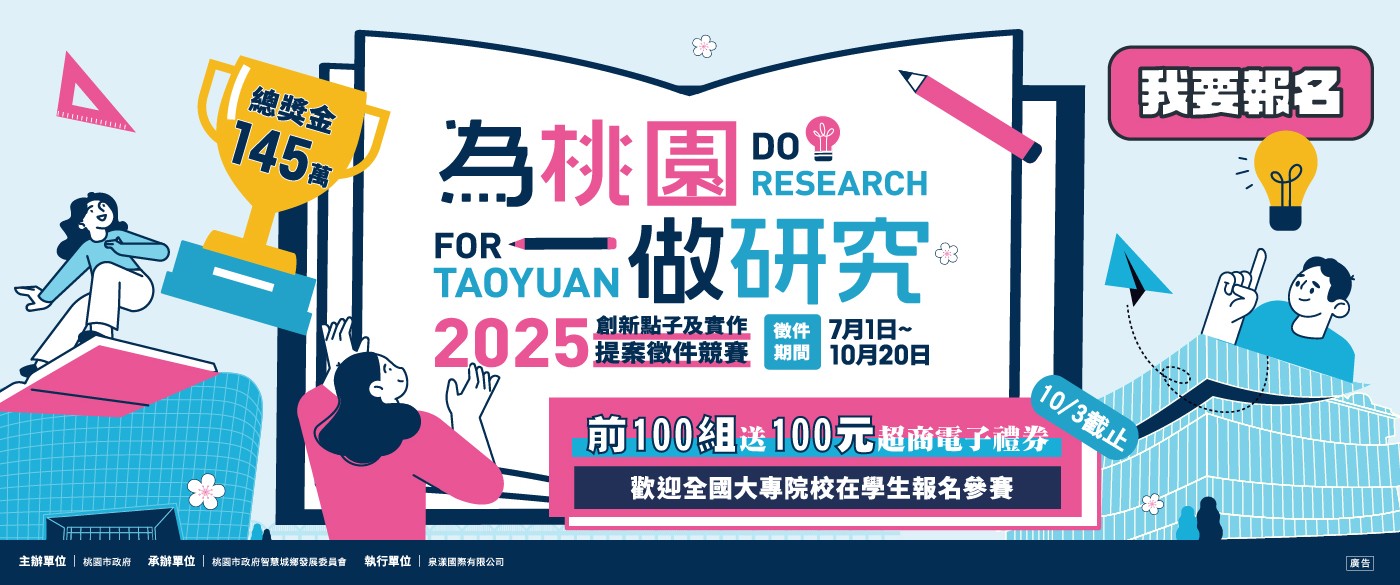 轉知國研處訊息:桃園市政府大專校院學生創新點子及研究實作獎勵計畫