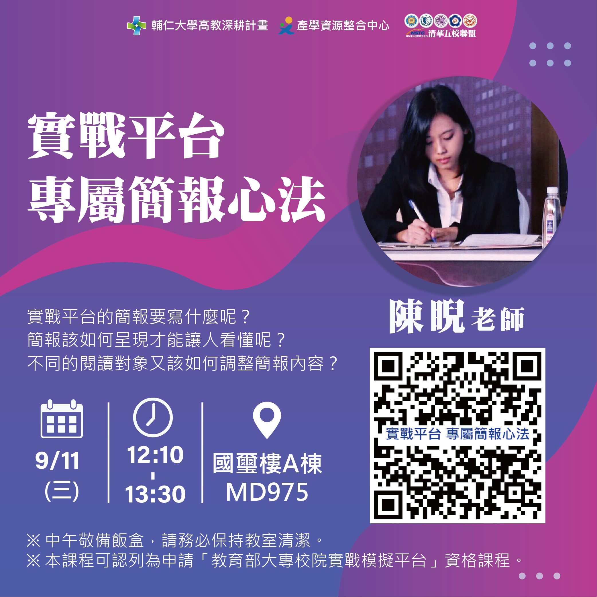| 講座&活動 | 轉知輔仁大學學校財團法人輔仁大學檢送「2024年實戰平台專屬簡報心法」課程簡介,歡迎轉知貴校線上報名參加,請查照。 | 活動海報 來函 |