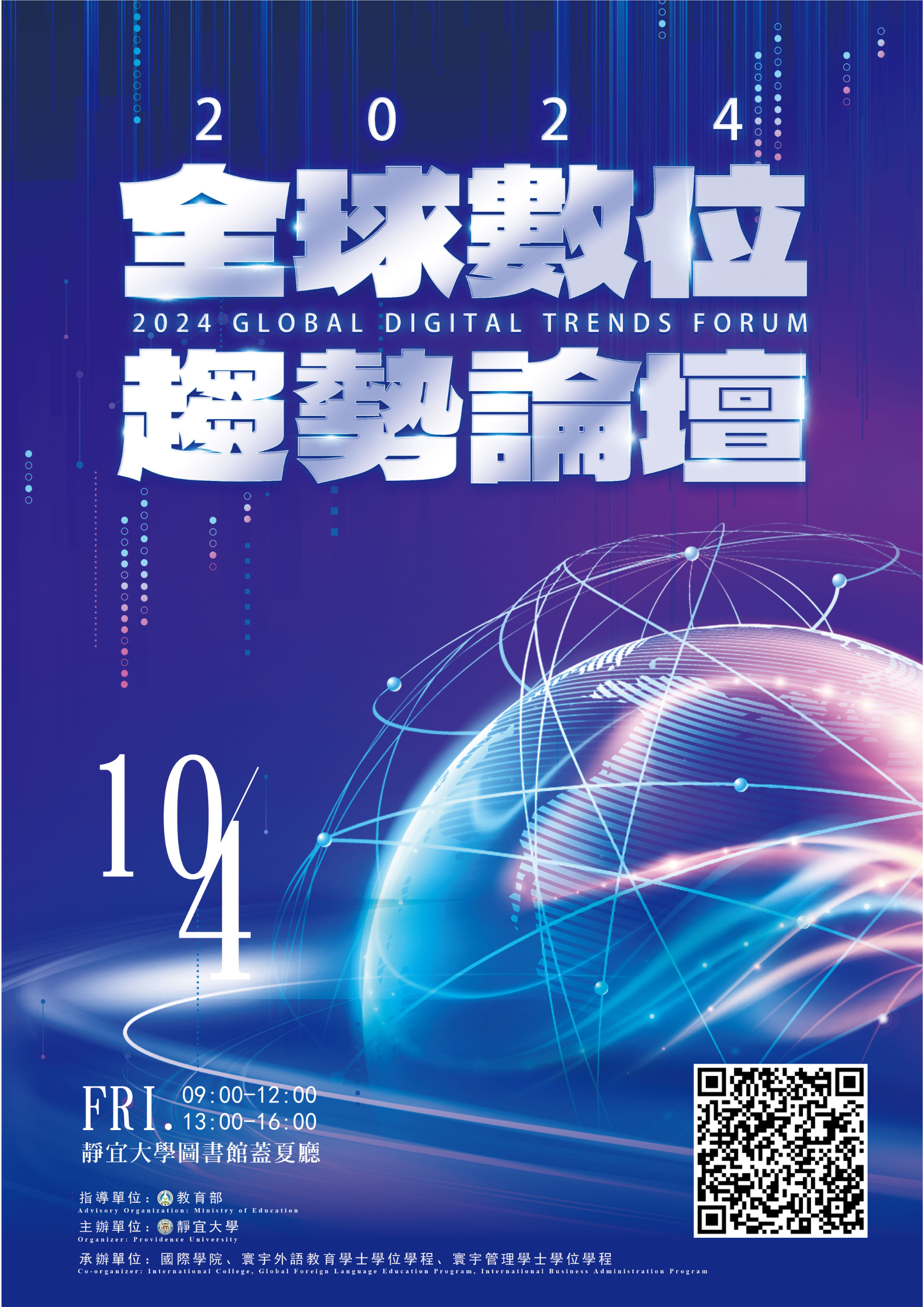 | 講座&活動 | 轉知靜宜大學國際學院辦理「2024全球數位趨勢論壇」,敬請惠予公告並鼓勵本校師生踴躍參加。 | 海報 海報 來函 |