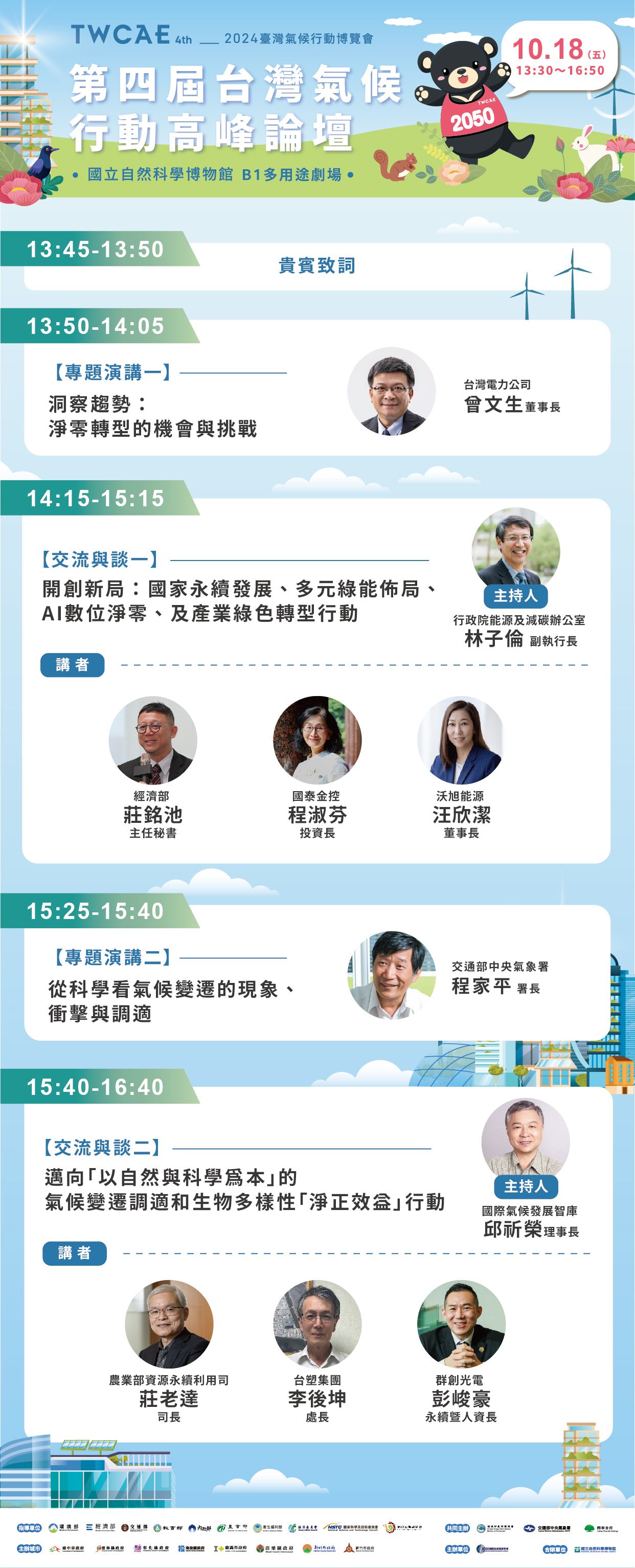| 講座&活動 | 轉知社團法人國際氣候發展智庫學會誠邀本校師生參加「2024第四屆臺灣氣候行動博覽會」論壇暨氣候對話活動。 | 來函 議程 海報 海報 海報 |