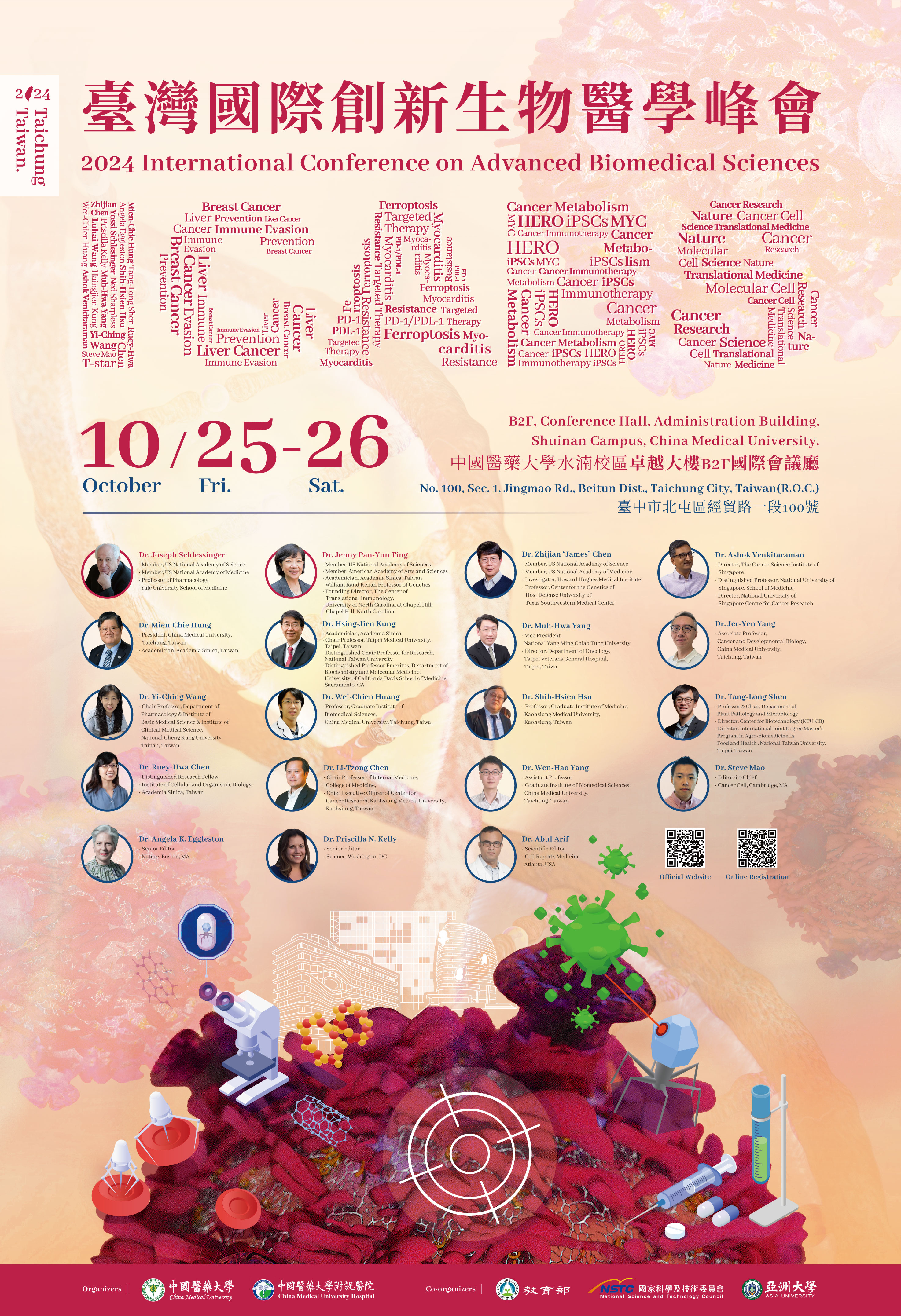 | 講座&活動 | 轉知中國醫藥大學「2024 International Conference on Advanced Biomedical Sciences臺灣國際創新生物醫學峰會」報名資訊,敬請惠允公告並鼓勵所屬踴 | 海報 來函 活動資訊 |