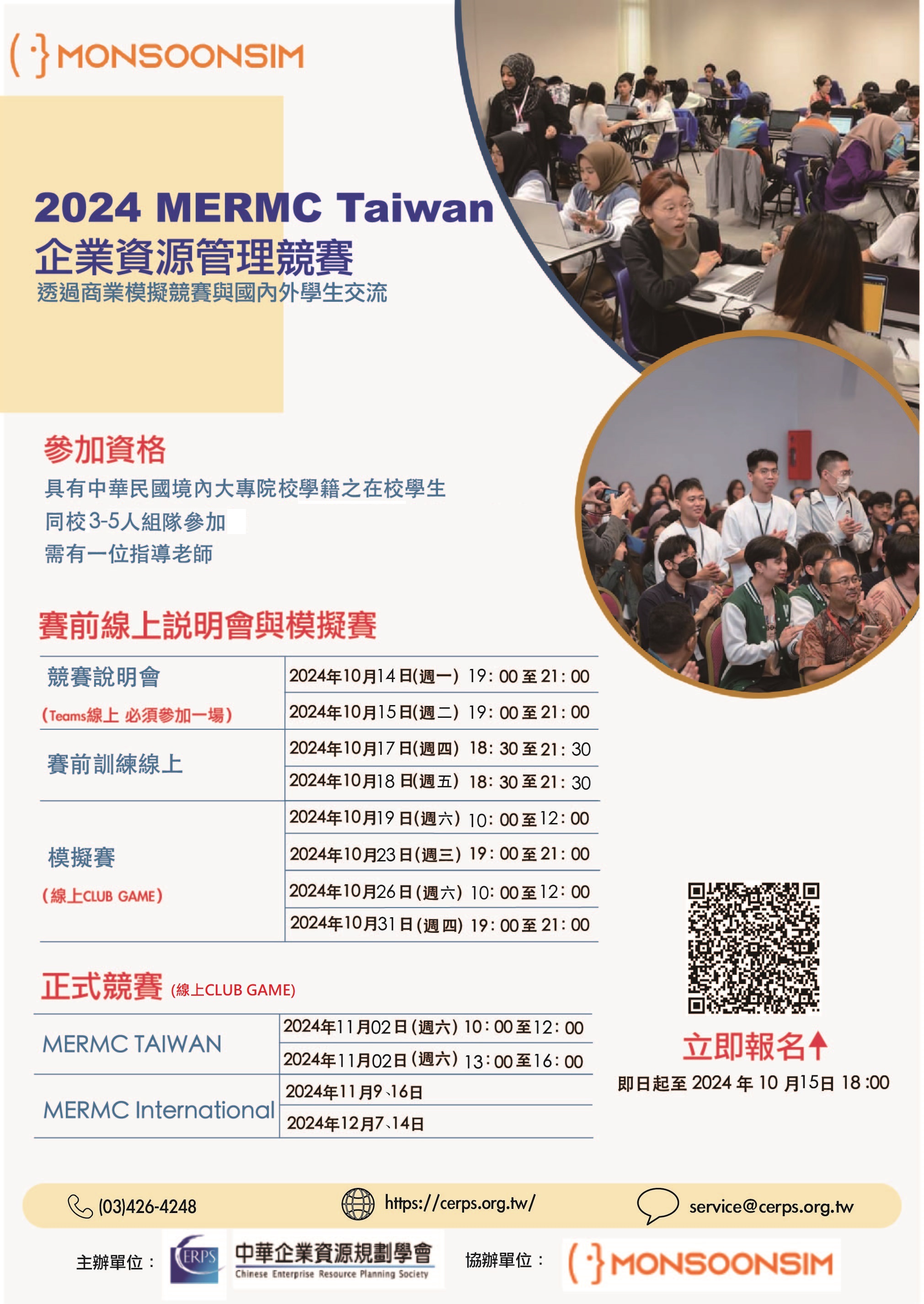 | 講座&活動 | 轉知 2024 MERMC Taiwan 企業資源管理競賽 | 海報 活動資訊 |