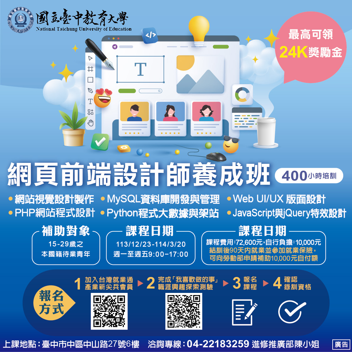 | 講座&活動 | 產業新尖兵計畫-網頁前端設計師養成班 | 活動海報 |