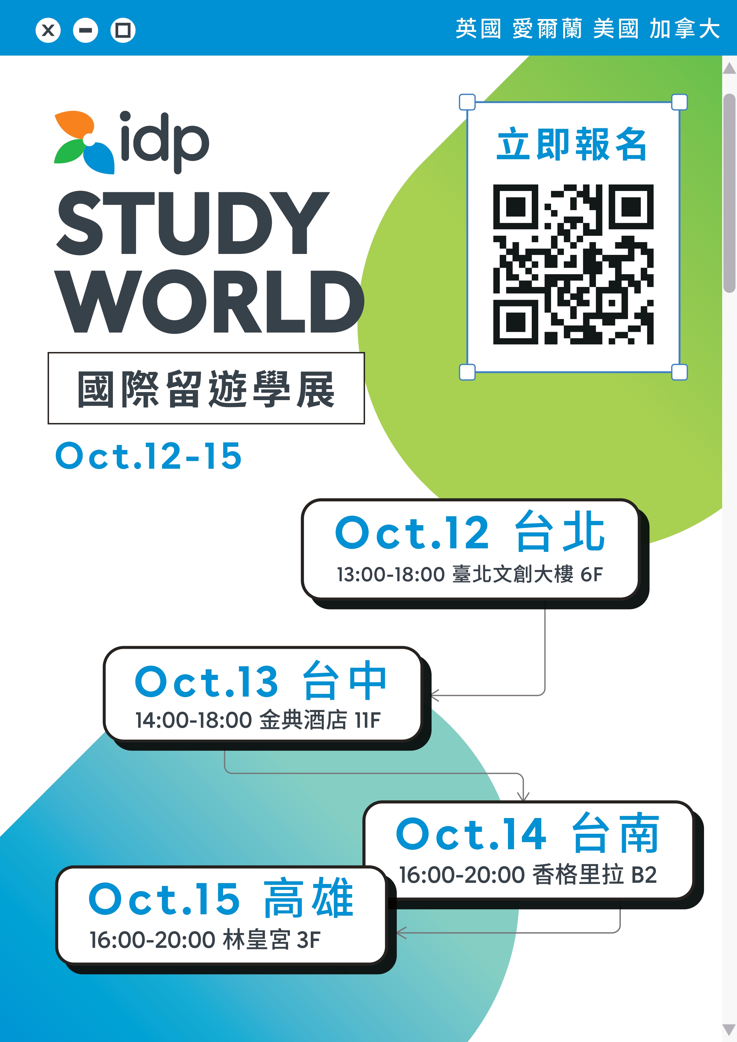 | 講座&活動 | 敬邀貴校師生蒞臨2024 IDP Study World 國際留遊學展 | 海報 活動資訊 |