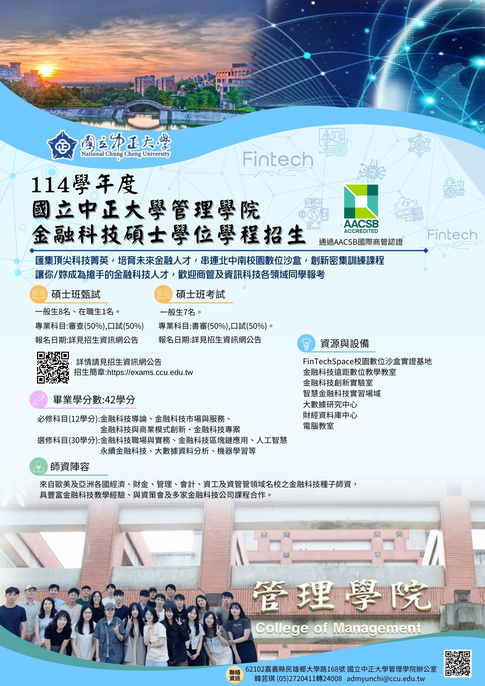 國立中正大學金融科技碩士學位學程為本校管理學院全新設立之跨領
