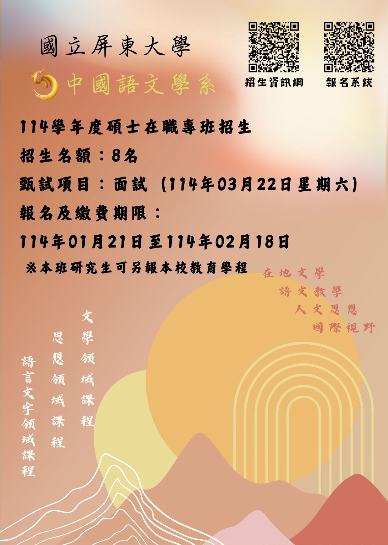 國立屏東大學中國語文學系114學年度碩士在職專班招生簡章