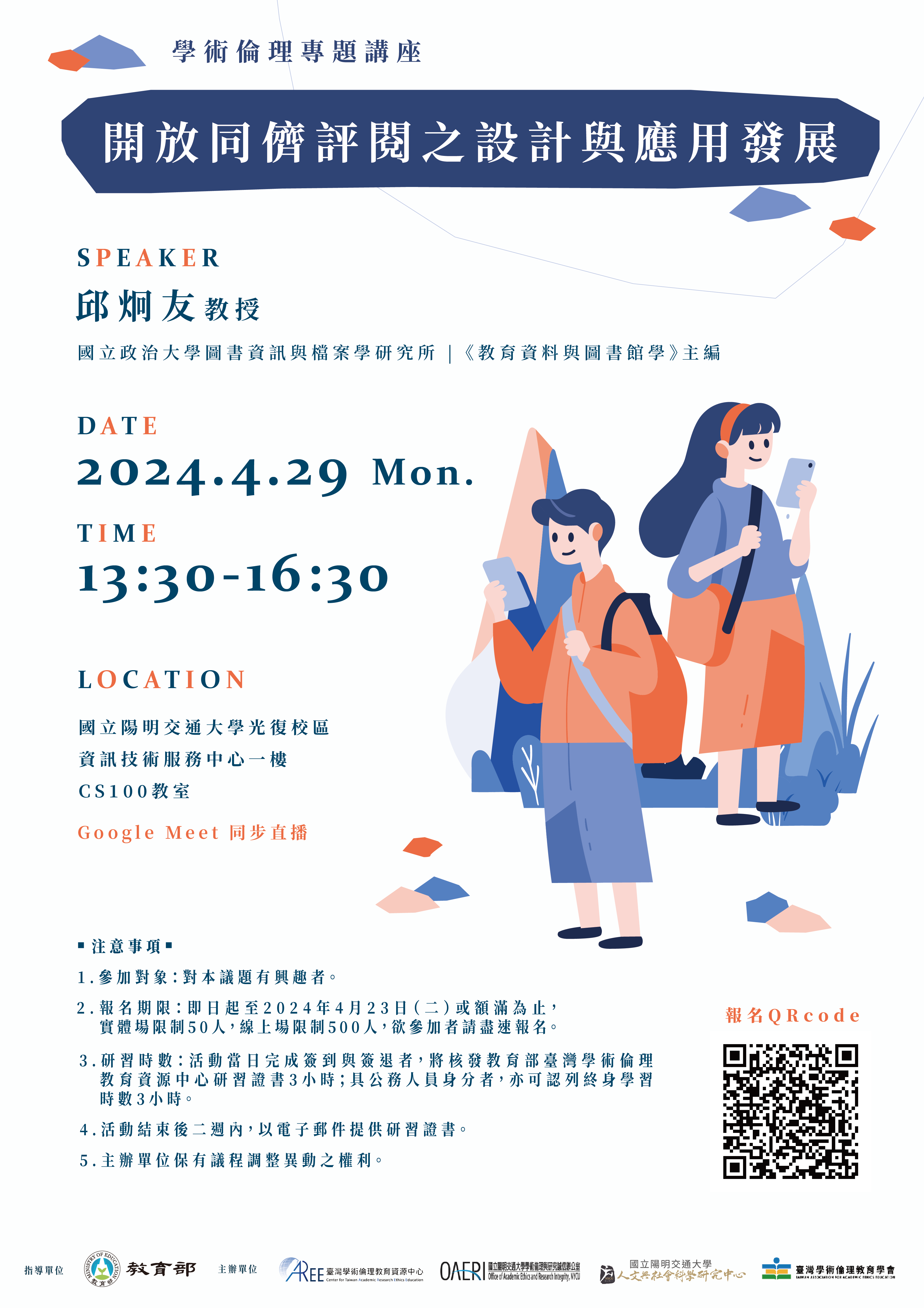 (一)主題:開放同儕評閱之設計與應用發展(中文講座)。